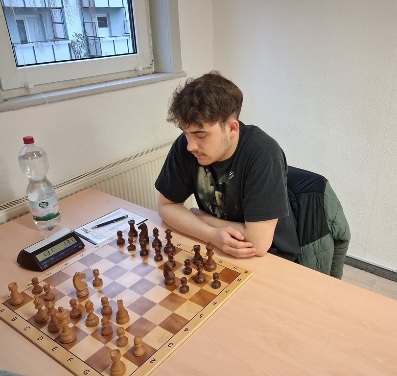 Gegen den bislang noch sieglosen Tabellenletzten aus Stadtilm, der bislang erst einen Brettpunkt verbucht hatte, wollte unsere vierte Mannschaft nach zwei knappen Niederlagen und einem Unentschieden im vierten Anlauf endlich den ersten Mannschaftssieg unter Dach und Fach bringen. Doch am Ende reichte es wieder nur zu einem 2:2. Moritz Franke und Jakob Schumann hatten den ESK mit 2:0 in Führung gebracht, wobei Jakob Caissas Hilfe nötig hatte. Eigentlich stand er schon auf matt, doch der Gegner ließ ihn entwischen. Nun fehlte nur noch ein halber Punkt. Der aber wollte sich nicht einstellen. Leonard Hendrich übersah leider eine kleine Taktik, die ihm den Rückgewinn einer verlorenen Figur beschert hätte. Und Demirs König war in einer offenen Stellung einfach nicht vor den gegnerischen Schachgeboten sicher, so dass am Ende das Damenmatt auf f1 den Gästen die durchaus verdiente Punkteteilung bescherte.