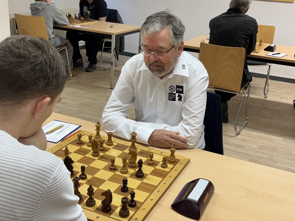 Am 4. Spieltag in den Thüringen Ligen waren die zweite, dritte und vierte Mannschaft des ESK gefordert. Die zweite Mannschaft bestritt in der Thüringenliga ein Heimspiel gegen SC Rochade Leidefelde. Auch ohne die vier ersten Bretter gelang ein klarer 5,5 – 2,5 Erfolg dank der nachgerückten Spieler an den vorderen vier Brettern. Paul Seinsoth(1), Philipp Zitzelsberger(2), Stefan Duzy(3) und Rudolf Rüther(4) gewannen, remis spielten Linus Apel(5), Heino Sunderbrink(6) und Erik Heitmann(8). Damit verteidigte der ESK den 1. Tabellenplatz.
