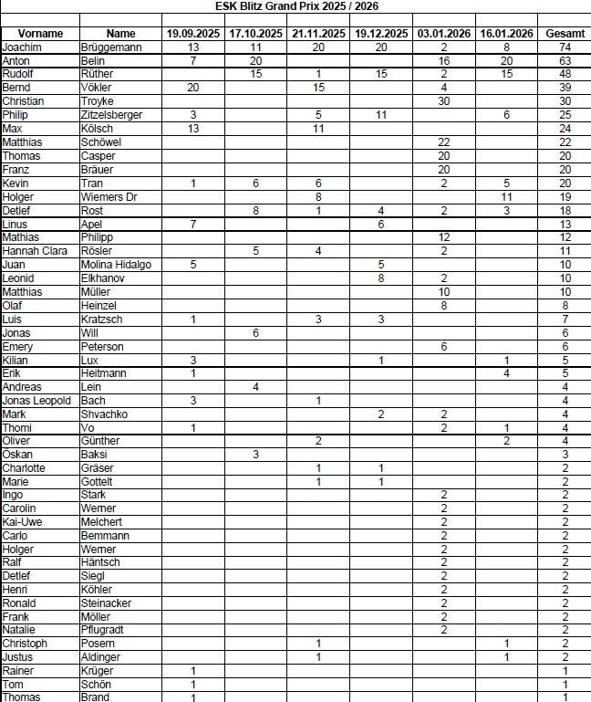 Grand Prix Wertung Zwischenstand Beitragsnavigation Ausschreibung Thüringer Einzelmeisterschaft U8Zwei hohe Siege in der Oberliga 2 Ost für die erste Mannschaft des ESK