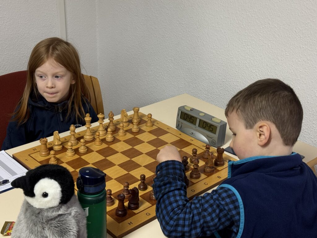 Gleich in der ersten Runde war es zum ESK-internen Duell gekommen, das Jonathan Kölsch nach einem Figureneinsteller von Theo gewonnen hatte. Jonathan wiederum kassierte zwei Runden später seine einzige Niederlage gegen Jannik Schuhmann.