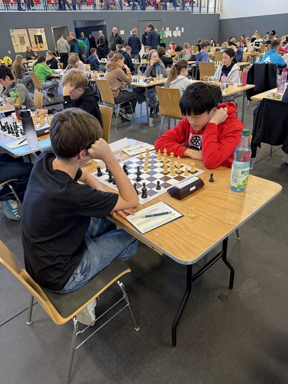 Jonas` älterer Bruder Kilian Lux erspielte sich in der U14 mit 3,5/7 ein ausgeglichenes Ergebnis, wenngleich Kilian ein wenig mit seiner Punktausbeute haderte, da er in der ein oder anderen Partie nach guter Eröffnung ausgekontert wurde. Ähnlich verlief es in der U16 bei Erik Heitmann und Anh Duc Kevin Tran, die beide schlussendlich mit ebenfalls 3,5/7 Punkten den 8., bzw. den 9. Platz belegten. Kevin spielte mutig und experimentierte mit für ihn neu erlernten Eröffnungen. Davon wird Kevin sicherlich in der Zukunft profitieren. Erik spielte oftmals sehr lange Partien mit beidseitiger Zeitnot und ließ an manchen Stellen taktisch was liegen. Eigentlich hätte Erik noch bei den U14 spielen können, er suchte aber bewusst den Kampf mit den Älteren, um in der Zukunft schachlich schneller voranzukommen.